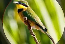 蓝喉蜂是蜂虎科蜂虎属鸟类。体长26-28厘米,嘴长而弯曲,有明显细长的中央尾羽。头部、颈部和背部为巧克力色,有黑色眼纹。喉部、腰部和尾羽为蓝色。腹部和两翼为绿色。幼鸟外观似成鸟,头部、颈部和背部为绿色,…全部>>