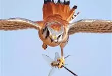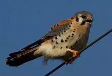 红隼:是隼科、隼属的小型猛禽之一。体重173-335克,体长305-360毫米。翅狭长而尖,尾亦较长,外形和共同爪隼非常相似。雄鸟头蓝灰色,背和翅上覆羽砖红色,具三角形黑斑;腰、尾上覆羽和尾羽蓝灰色,…全部>>