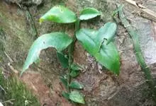 石柑子 Merr.):又名竹结草、爬山虎、巴岩香、百步藤。是单子叶植物纲、天南星科、石柑属附生藤本。茎亚木质,淡褐色,近圆柱形,具纵条纹,节上常束生长1-3厘米的气生根;分枝;叶片纸质,长6-13厘米,…全部>>