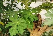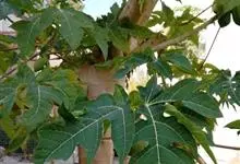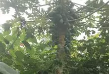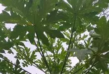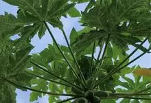 番木瓜,番木瓜科番木瓜属的常绿软木质小乔木,高达10米,具有乳汁;茎不分枝或有时于损伤处分枝;叶大且聚生于茎顶,近似盾形,叶柄中空;花单性或两性,有些品种雄株偶尔生两性花或雌花,…全部>>