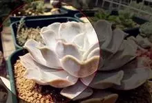芙蓉雪莲是景天科拟石莲花属的植物。由于叶片表面覆盖着一层厚霜粉,通常呈现出白色;日照增多,温差增大后叶缘、叶尖会呈现出粉红色或橙红色。…全部>>