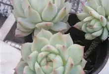 蓝石莲是景天科、拟石莲花属的多肉植物。茎部粗壮,成熟植株茎部木质化。叶片莲座型密集排列,株径不会很大,叶片相对较薄,常年绿色,表面布有白色粉末,中部凹陷,呈倒水滴状。叶尖较尖,叶缘光滑无褶皱,…全部>>