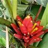 金嘴蝎尾蕉:芭蕉科,蝎尾蕉属多年生草本植物。株高可达6米。叶片长圆形,叶面绿色,叶背亮紫色;顶生花序,直立,薄被短柔毛;苞片绿色,开放时突露,花被片红色,顶端绿色,狭圆柱形,果三棱形,灰蓝色,有种子…全部>>