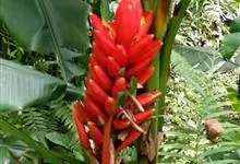 蝎尾蕉:蝎尾蕉科蝎尾蕉属植物多年生草本植物。株高可达260厘米。叶片长圆形,叶面绿色,叶背亮紫色;顶生花序,直立,薄被短柔毛;苞片绿色,开放时突露,花被片红色,顶端绿色,狭圆柱形,果三棱形,灰蓝色,…全部>>