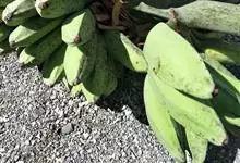 香蕉’),芭蕉科芭蕉属多年生草本植物,植株丛生,有匐匍茎;假茎浓绿有黑色斑点;叶片长圆形,上面为深绿色,无白粉,下面浅绿色;花朵为乳白色或淡紫色;果实呈弯曲的弓状,有棱,果皮为青绿色,…全部>>