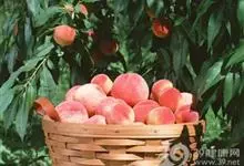 水蜜桃:蔷薇科、桃属植物。南方品种群中肉质柔软多汁呈软溶质的一类品种。果实顶部平圆,熟后易剥皮,多粘核。
