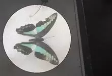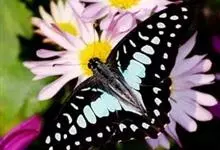 青带凤蝶Graphium sarpedon ,又名青凤蝶,是最普遍的中型凤蝶,飞行速度很快。青带凤蝶的翅膀中央有许多浅蓝色的斑点,很整齐地排列成一条直线。这些斑点由上而下逐渐变大,就像一条青色的带子。全部>>