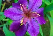 玉蝉花是鸢尾科鸢尾属的多年生草本植物,根状茎粗壮,斜伸;叶线形,中脉明显,长可达80厘米,宽约1厘米;花深紫色,直径约10厘米,花被管漏斗形,外花被裂片倒卵形,爪部细长,中央下陷呈沟状,…全部>>