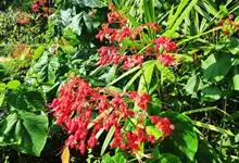 赪桐 Sweet)是唇形科、大青属灌木,高1-4米,叶片圆心形,顶端尖或渐尖,基部心形,边缘有疏短尖齿,表面疏生伏毛,二歧聚伞花序组成顶生,大而开展的圆锥花序,花序的最后侧枝呈总状花序,花萼红色,…全部>>