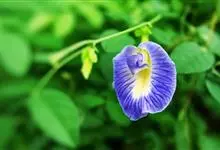 蝶豆是豆科蝶豆属植物。攀援状草质藤本。茎、小枝细弱,被脱落性贴伏短柔毛。叶长2.5-5厘米;托叶小,线形,长2-5毫米;叶柄长1.5-3厘米。花大,单朵腋生;苞片2,披针形。荚果长5-11厘米,…全部>>