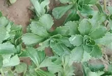 费菜 ’t Hart),又名土三七、三七景天、景天三七等,为景天科费菜属多年生草本植物。费菜根状茎短,有1-3条茎,直立。叶互生,狭披针形、椭圆状披针形至卵状倒披针形;叶坚实,近革质。聚伞花序有多花,…全部>>