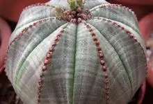 布纹球,是大戟科大戟属植物。植株小球形,表皮灰绿色,中有红褐色,顶部条纹较密;棱缘上褐色小钝齿;雌雄异株,雌株球体较扁,雄株茎圆筒形,均为单生球。开花,花极小,黄绿色;盛花期,夏季;球表皮灰绿色,…全部>>