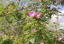 美蔷薇:是蔷薇科,蔷薇属的一种直立灌木,高1-3米;小枝有细而较直立的皮刺。羽状复叶;小叶7-9,长椭圆形或卵形,边缘有锐锯齿;叶柄和叶轴有柔毛和腺毛,有时有小皮刺;托叶宽。花粉红色,直径4-5厘米,…全部>>