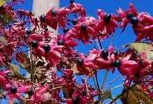 赪桐 Sweet)是唇形科、大青属灌木,高1-4米,叶片圆心形,顶端尖或渐尖,基部心形,边缘有疏短尖齿,表面疏生伏毛,二歧聚伞花序组成顶生,大而开展的圆锥花序,花序的最后侧枝呈总状花序,花萼红色,…全部>>