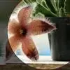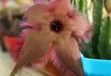 巨花犀角又称大豹皮花,是夹竹桃科犀角属的一种植物。茎粗,花大,边缘生长细毛。植株柱形多分枝呈丛生,柱形具4棱,棱缘具细小疣突。花大,五角星形黄色,并有横向棕褐色斑纹,似豹皮而得名。花期夏秋两季。…全部>>