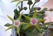 巨花犀角又称大豹皮花,是夹竹桃科犀角属的一种植物。茎粗,花大,边缘生长细毛。植株柱形多分枝呈丛生,柱形具4棱,棱缘具细小疣突。花大,五角星形黄色,并有横向棕褐色斑纹,似豹皮而得名。花期夏秋两季。…全部>>