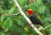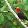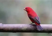 血雀雀科朱雀属鸟类,体重36-49克;体长155-182毫米。雄鸟除眼先、翼与尾为黑色外,通体为鲜红色;嘴鲜黄;雌鸟暗橄榄绿色,羽端较淡或带黄色;腰鲜黄;嘴较暗。虹膜褐色;嘴黄色;腿和脚褐色。…全部>>