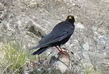 红嘴山鸦,是脊索动物门鸟纲雀形目鸦科鸟类。红嘴山鸦的成鸟通体羽毛纯黑色具有蓝色金属光泽,翼和尾泛有蓝绿色金属光泽;虹膜暗褐色,喙较为尖细,并且呈镰状下弯,喙和脚朱红色。…全部>>