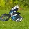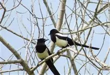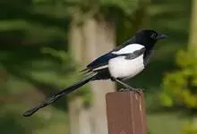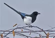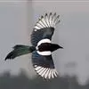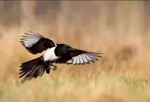 喜鹊:是鸦科、鹊属的一种鸟类。共有11个亚种。体长40-50厘米,雌雄羽色相似,头、颈、背至尾均为黑色,并自前往后分别呈现紫色、绿蓝色、绿色等光泽,双翅黑色而在翼肩有一大形白斑,尾远较翅长,呈楔形,…全部>>