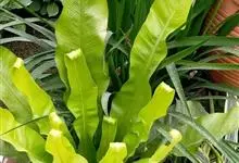 巢蕨是铁角蕨科铁角蕨属的中型附生草本植物。植株高1-1.2米;根状茎直立,深棕色;叶簇生,叶柄呈浅禾秆色,叶片呈阔披针形,干后灰绿色,两面均无毛;孢子囊群呈线形,生于小脉的上侧;囊群盖呈线形,浅棕色。…全部>>