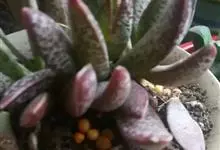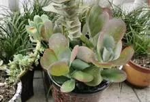 唐印为景天科伽蓝菜属的多年生肉质草本植物。植株中型,株高50厘米,宽20厘米,多分枝;叶片肉质,对生,卵形,全缘,先端钝圆,叶片淡绿色至灰绿色,表面被有厚厚的白粉,光照充足时,叶缘呈红色;圆锥花序,…全部>>