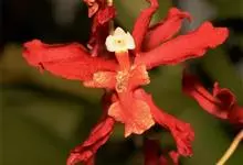 鸟舌兰 Schltr.)是兰科鸟舌兰属的附生植物。茎直立;叶扁平,下部V字形对折,上部稍外弯,窄长圆形;花序直立,较叶短,朱红色,萼片和花瓣近似,宽卵形,侧裂片黄色;花期4-5月。…全部>>