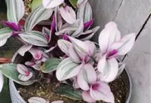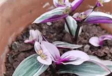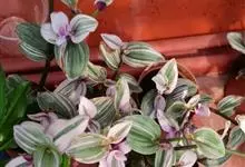 吊竹梅是鸭跖草科紫露草属的多年生草本植物;茎半肉质,柔弱披散至悬垂;叶椭圆形至长圆形,无柄,先端急尖至渐尖,基部鞘状抱茎,叶面紫绿色而杂有银白色,叶背紫色,全缘;花聚生于顶生叶状苞内,…全部>>