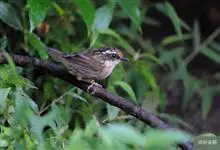 褐胁雀鹛,是莺科、雀鹛属的鸟类。褐胁雀鹛是小型鸟类,体长13-15厘米。头顶棕褐色,黑色侧冠纹和宽阔的白色眉纹,眼先黑色。上体包括两翅和尾橄榄褐色。颏、喉、胸、腹白色,腹和胸沾皮黄色,两胁橄榄褐色,…全部>>