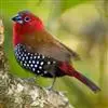 红梅花雀小型鸟类,体长9-10厘米。雄鸟通体朱红色,背、肩、胸等满布白色小斑点,两翅和尾黑褐色均具白色端斑,嘴红色,脚蜡黄色。雌鸟上体淡褐色或赭褐色,翅上中覆羽、大覆羽和内侧飞羽末端具白色斑点,…全部>>