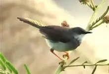 白喉林莺:体长10-13厘米,是一种类体型略小的莺鸟。喉白,上体灰褐或沙褐色,头顶较灰,贯眼纹黑褐或暗褐色。下体污白。耳羽深黑灰,胸侧及两胁沾皮黄色、褐色或淡粉红色。外侧尾羽羽缘白色。…全部>>