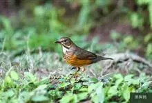 赤颈鸫是鸫科、鸫属中型鸟类,体长22-25厘米。上体灰褐色,有窄的栗色眉纹。颏、喉、上胸红褐色,腹至尾下覆羽白色,腋羽和翼下覆羽橙棕色。虹膜暗褐色,嘴黑褐色,下嘴基部黄色,脚黄褐色或暗褐色。…全部>>