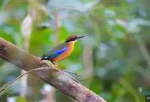 蓝翅八色鸫是雀形目八色鸫科的鸟类。体长17-20厘米,体重类约48-70克,体型圆胖,尾短,腿长,以身体具有红、绿、蓝、白、黑、黄、褐、栗等鲜艳夺目,丰富艳丽的色彩而得名,是很有观赏价值的鸟类。主要…全部>>