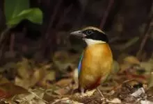 栗头八色鸫又叫锅巴雀,体长为24-26厘米,体重100-135克,是雀形目八色鸫科的鸟类。体型圆胖,尾短,腿长,常在森林底层或低植被中找食无脊椎动物。叫声简单哀婉。…全部>>