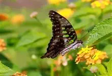 青带凤蝶Graphium sarpedon ,又名青凤蝶,是最普遍的中型凤蝶,飞行速度很快。青带凤蝶的翅膀中央有许多浅蓝色的斑点,很整齐地排列成一条直线。这些斑点由上而下逐渐变大,就像一条青色的带子。全部>>
