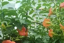 凌霄 Schum.),别名上树龙、五爪龙、九龙下海等,为紫葳科凌霄属的攀援藤本植物。其茎木质,以气生根攀附于它物之上。叶对生,为奇数羽状复叶;小叶卵形至卵状披针形,边缘有粗锯齿;顶生疏散的短圆锥花序,…全部>>
