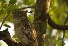 褐渔鸮,是鸱鸮科、渔鸮属的鸟类。褐渔鸮为大型鸮类,体长51-55厘米,外形和毛脚鱼鸮相似,但较棕褐色,上体有粗著黑色斑纹,下体黄白色或浅暗黄色,有粗著的黑色条纹和细的波状横斑,喉有大的白色块斑,…全部>>