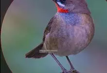 蓝点颏亦称“蓝喉歌鸲”,通称蓝靛颏儿。身体大小和麻雀相似,体长12-13厘米,体重17-18克。头部、上体主要为土褐色。眉纹白色。尾羽黑褐色,基部栗红色。颏部、喉部辉蓝色,下面有黑色横纹。下体白色。…全部>>