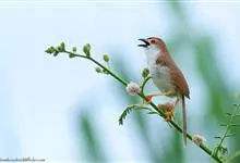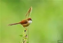 金眼鹛雀是莺科、鹛雀属小型鸟类。体长16-20厘米。头顶和上体棕褐色,两翅表面肉桂红色,尾褐色具明暗相间横斑。眼周金黄色,眼先、眼上、眼下、颊以及颏、喉和上胸概为白色,其余下体茶黄色,脚橙黄色。…全部>>