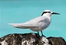 鸥嘴噪鸥,中型水禽,体长31~39厘米。夏羽额、头顶、枕和头的两侧从眼和耳羽以上黑色。背、肩、腰和翅上覆羽珠灰色。后颈、尾上覆羽和尾白色,中央一对尾羽珠灰色。尾呈深叉状。冬羽头白色,头顶和枕缀有灰色…全部>>