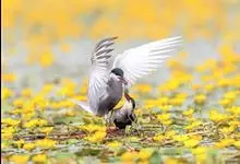 北极燕鸥是属于燕鸥属的一种海鸟。体型中等,体长33-39厘米,翼展76-85厘米。其羽毛主要呈灰色与白色,喙和两脚呈红色,前额呈白色,头顶和颈背呈黑色,腮帮子呈白色。其灰色翅膀为305毫米,肩羽带棕…全部>>