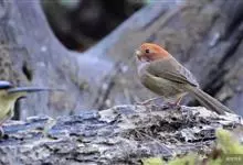 褐翅鸦雀是莺科、鸦雀属小型鸟类,体长11-13厘米。嘴短而粗厚、似鹦鹉嘴,头、后颈和颈侧栗红色。上体橄榄褐色,翅缘褐色。颏、喉、胸葡萄红色具细的栗红色纵纹。虹膜棕红或深红色,嘴乳黄或角黄色,…全部>>