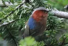 凤头雀莺:小型鸟类。体长9-10厘米,雄鸟呈毛茸茸的紫色和绛紫色,顶冠淡紫灰色,额及凤头白色,尾全蓝。雌鸟喉及上胸白,至臀部渐变成淡紫色,耳羽灰,…全部>>