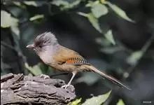 栗额斑翅鹛是噪眉科、斑翅鹛属中型鸟类,体长20-23厘米。头顶具浓密的羽冠,前额栗棕色,头顶灰褐色。上体棕褐色,两翅棕褐色具黑色横斑,翅基外缘有一黑斑,尾呈凸状,棕褐色具黑色横斑。下体棕褐色,…全部>>