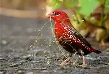 红梅花雀小型鸟类,体长9-10厘米。雄鸟通体朱红色,背、肩、胸等满布白色小斑点,两翅和尾黑褐色均具白色端斑,嘴红色,脚蜡黄色。雌鸟上体淡褐色或赭褐色,翅上中覆羽、大覆羽和内侧飞羽末端具白色斑点,…全部>>