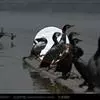 普通鸬鹚是属于鲣鸟目鸬鹚科鸬鹚属鸟类,又名水老鸦、鱼鹰、乌鬼、黑鱼郎等。体长720—900毫米,雌雄同型。通体黑色,有绿褐色金属光泽;喙厚重,喙基和喉囊橙黄色,脸颊及喉白色;夏羽颈及头饰具白色丝状羽,…全部>>