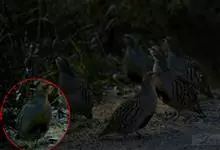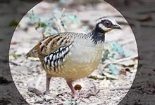 褐胸山鹧鸪:雄鸟体长22厘米,体重310克;雌鸟体长23厘米,体重220-275克。前额皮黄白色,头顶橄榄褐色。眼部的裸皮鲜红色,有一条宽阔的皮黄白色眉纹一直延伸到颈的侧部。上体亮橄榄褐色,具黑色横斑。…全部>>