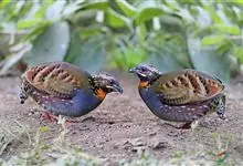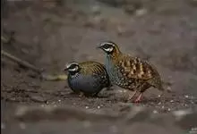 台湾山鹧鸪雉科山鹧鸪属的一种鸟类,雄鸟的体长为36厘米,体重311克;雌鸟体长25米,体重212克。体羽与海南山鹧鸪相似,额暗灰色,头顶橄榄褐色,头侧黑色而杂有白色羽毛。眼周栗褐色,外缘黑色。…全部>>