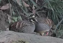 褐胸山鹧鸪:雄鸟体长22厘米,体重310克;雌鸟体长23厘米,体重220-275克。前额皮黄白色,头顶橄榄褐色。眼部的裸皮鲜红色,有一条宽阔的皮黄白色眉纹一直延伸到颈的侧部。上体亮橄榄褐色,具黑色横斑。…全部>>