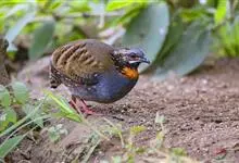冕鹧鸪:是鸡形目、雉科、冕鹧鸪属的一种漂亮的鸟类,体长26厘米左右,大小和鹌鹑差不多。整体呈带有光泽的蓝紫色,腿为赤红色;雌雄与其他雉类差异较大不同,雌雄都长着红眼圈,喙附近长着细长的须,…全部>>