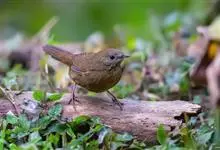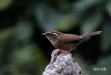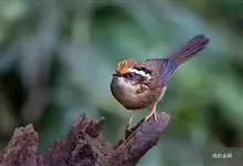 白腹幽鹛,是画眉科幽鹛属鸟类,共有4亚种。雕雄羽色相似。 上体从头到尾包括两题表面概为微椎褐色,两翅和尾沾更多红色。眼先和颚上灰褐色,耳覆羽褐色具族色羽轴纹,颈与背同色。额、喉白色具矢状黑斑,…全部>>